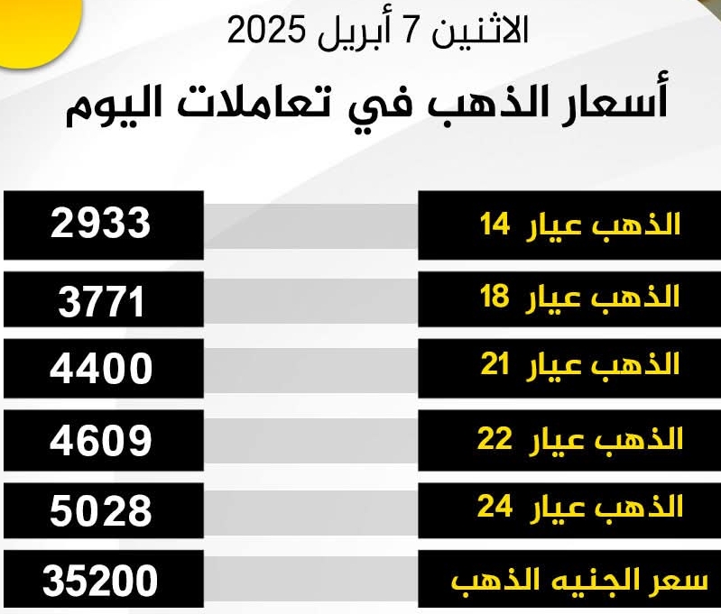 أسعار الذهب في تعاملات اليوم الاثنين 7 أبريل 2025