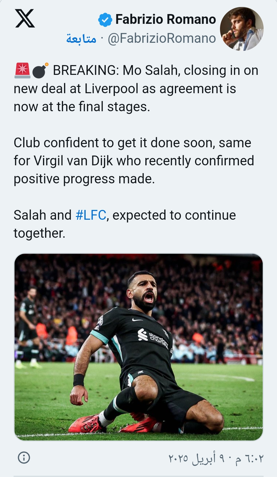 “إكس” خبرا قال فيه: “محمد صلاح يقترب من
