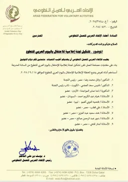 قرار بتشكيل لجنة إعلامية للاحتفال باليوم العربي للتطوع