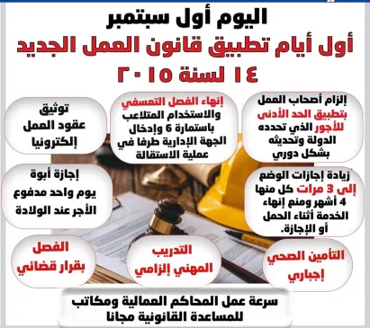 اليوم أول سبتمبر أول أيام تطبيق قانون العمل الجديد ١٤ لسنة ٢٠١٥