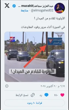 فيما كتبت مدونة، قائلة: “صورة بدل الكلام.. الأولوية للقادم من الميدان”، وكتب معلق آخر: “رسائل القدر.. الأولوية للقادم من الميدان”.