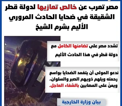 مصر تعرب عن خالص تعازيها لدولة قطر الشقيقة