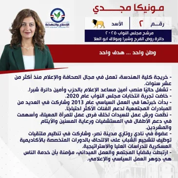 السيرة الذاتية لمونيكا مجدي مرشحة النواب عن دائرة روض الفرج وشبرا وبولاق أبو العلا وطن واحد هدف واحد