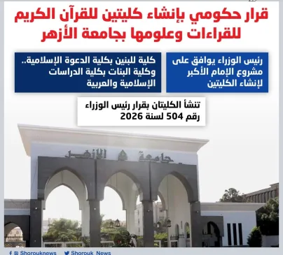 قرار حكومي بإنشاء كليتين للقرآن الكريم للقراءات وعلومها بجامعة الأزهر