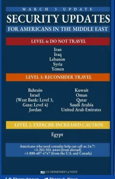 بعد تحركات دبلوماسية ناجحة.. السفارة الأمريكية بالقاهرة تعلن بقاء مستوى إرشادات السفر إلى مصر كما هي قبل اندلاع الحرب